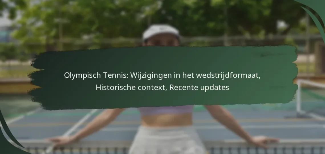 Recente updates in het Olympisch tennis omvatten wijzigingen in wedstrijdformaten, kwalificatiecriteria voor spelers en nieuwe promotionele initiatieven die gericht zijn op het vergroten van de zichtbaarheid van de sport. Deze updates weerspiegelen de voortdurende evolutie van tennis binnen het Olympische kader, beïnvloed door de Internationale Tennisfederatie (ITF) en het Internationaal Olympisch Comité (IOC).