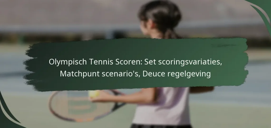 Olympisch tennis introduceert unieke scoringsvariaties die verschillen van traditionele formats, met name in setoverwinningen en de toepassing van tiebreakers, wat de competitieve balans versterkt. Sleutelmomenten, zoals matchpoints, leggen enorme druk op spelers terwijl ze proberen de overwinning te behalen, terwijl deuce-scenario’s vereisen dat er twee opeenvolgende punten gewonnen worden om het spel te winnen, wat een extra laag van uitdaging aan de wedstrijd toevoegt.